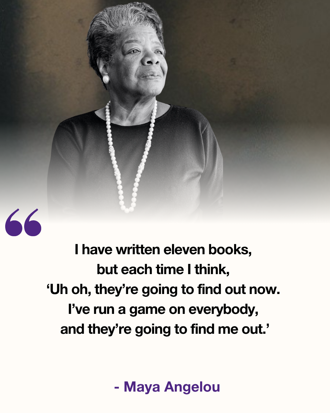 Maya Angelou, poet, memoirist, civil rights activist, and recipient of the Presidential Medal of Freedom, once confided: "Each time I think — uh oh… I've run a game on everybody, and they’re going to find me out."